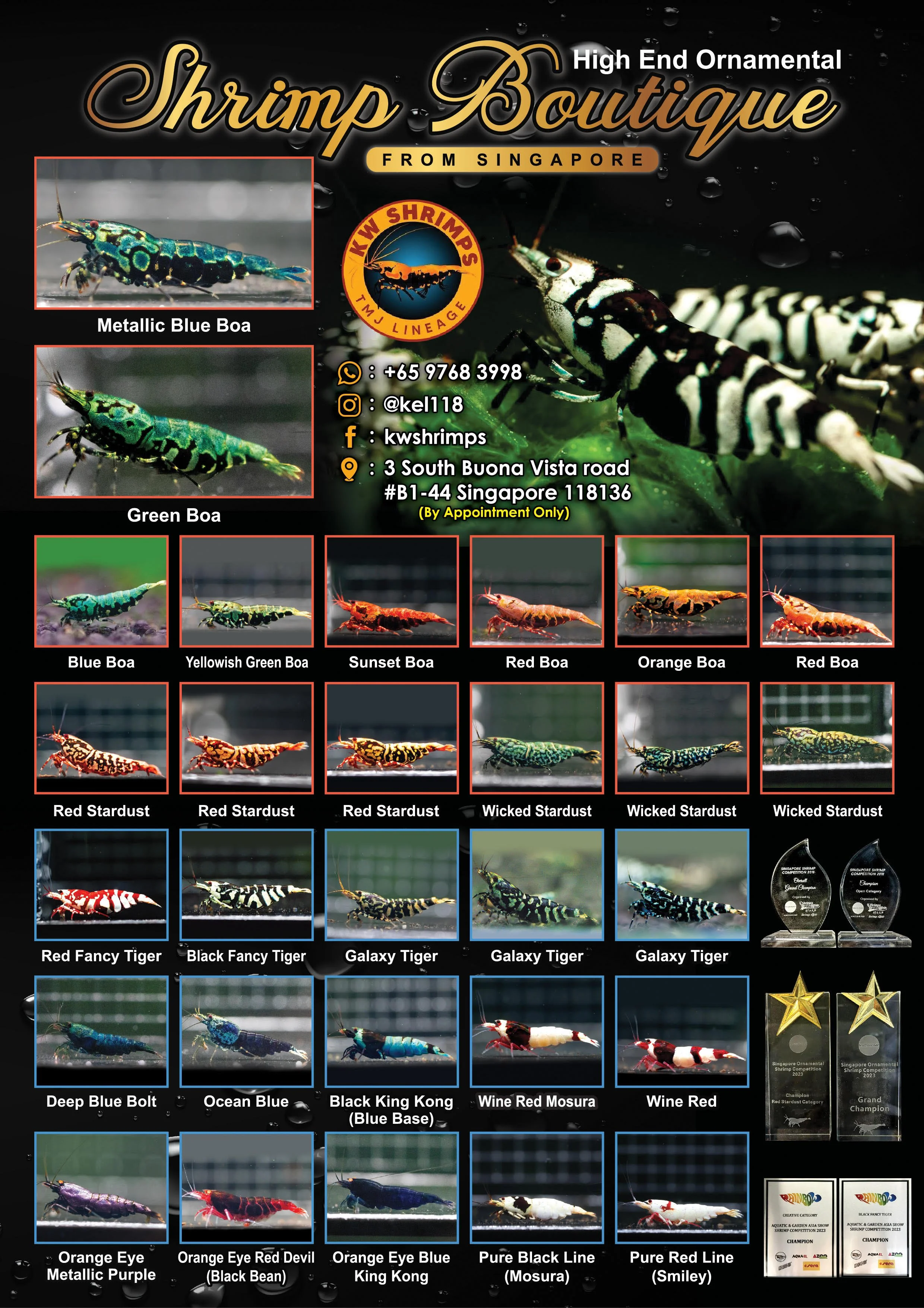 With a strong passion for selective breeding and cultivation, Kelvin has consistently achieved outstanding results in international shrimp competitions. His work focuses on refining quality, stability, and unique traits in premium ornamental shrimp lines.